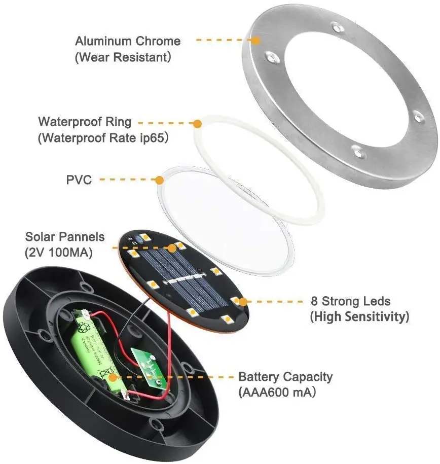 Product Name: 1/4pcs 태양 강화한 지상 빛 방수 정원 통로 갑판 빛 8/12/20 LED 램프 홈 야드 차도 잔디 도로