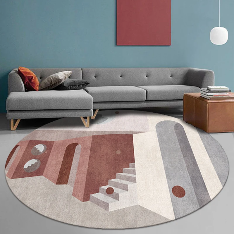 Product Name: 북유럽 둥근 모양 거실 프린트 아트 러그, 장식 커피 테이블 그라운드 매트, 인기 쉬운 관리, 머리카락 바닥 매트 없음
